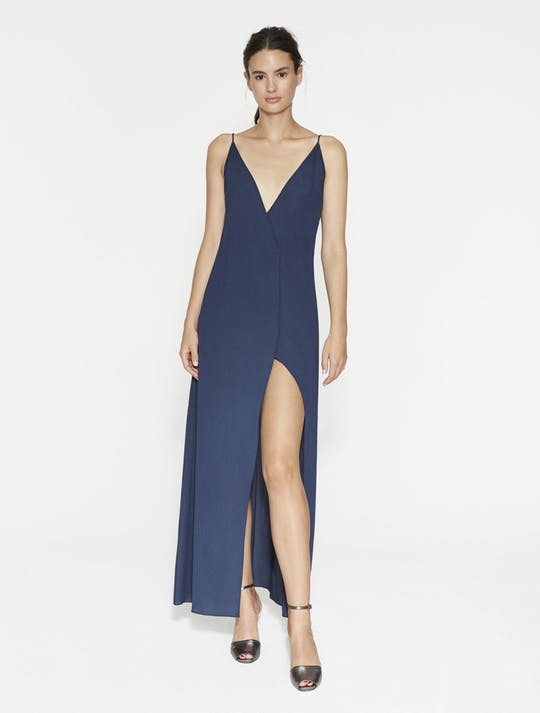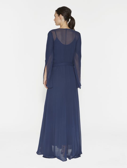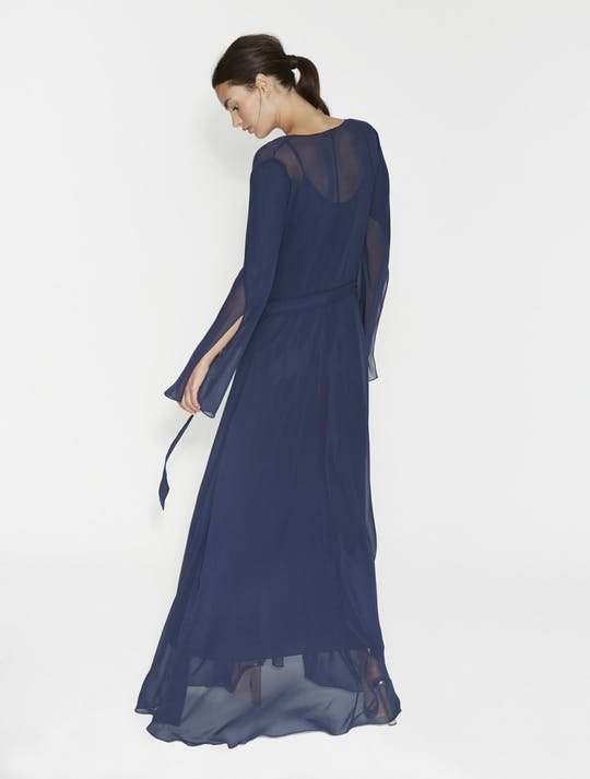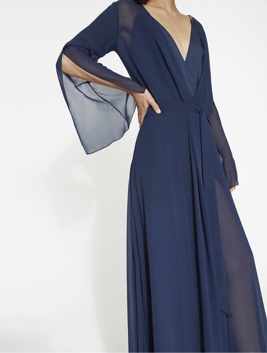 FLOWY CHIFFON WRAP GOWN - DARK NAVY